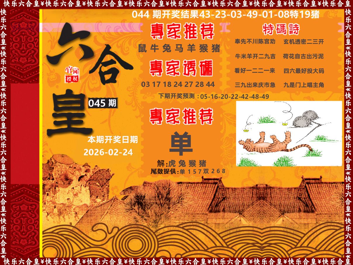 044期:★必中六肖★ 《【虎羊蛇猪狗兔】》开:19猪准